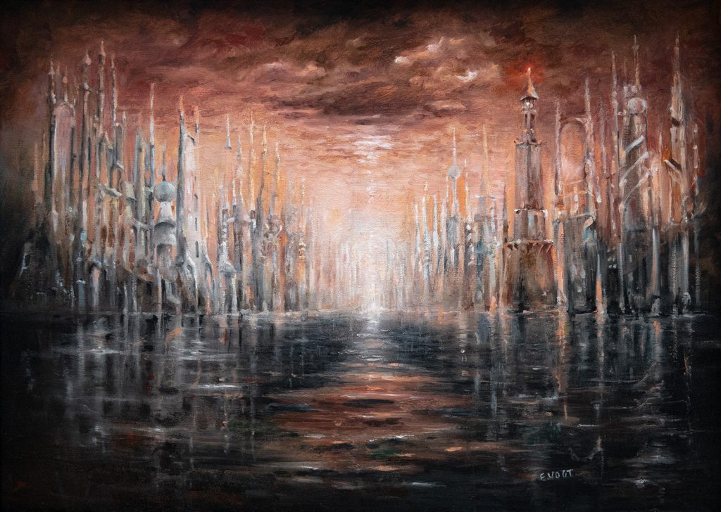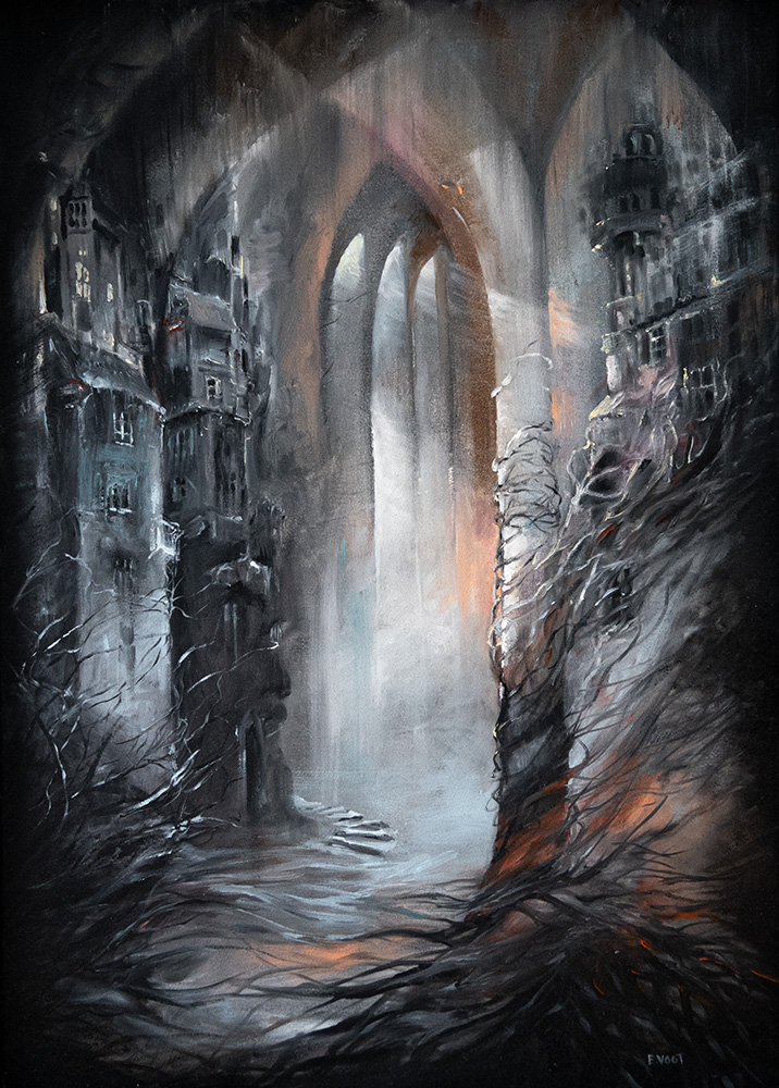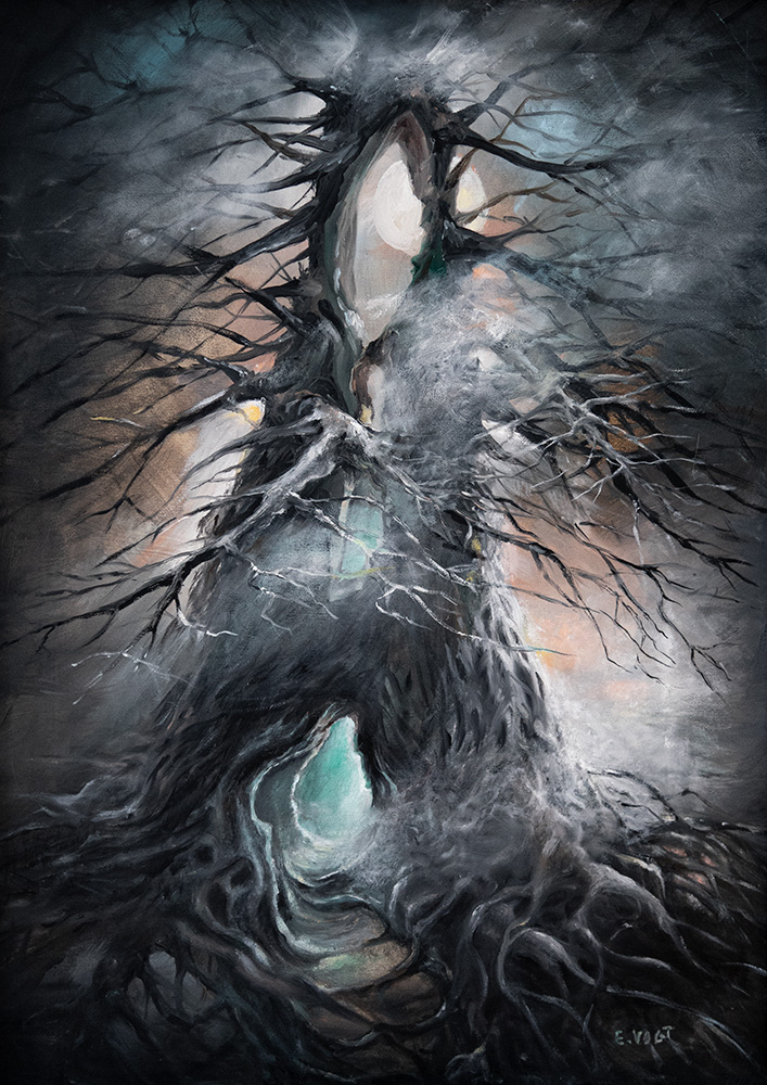 In my art I combine realism and fantasy. I like to paint the real world intertwined with unreal problems, or an unreal world that’s tangled in real-life issues. As you can see, my style has changed over the years in line with the ever-changing world around us.